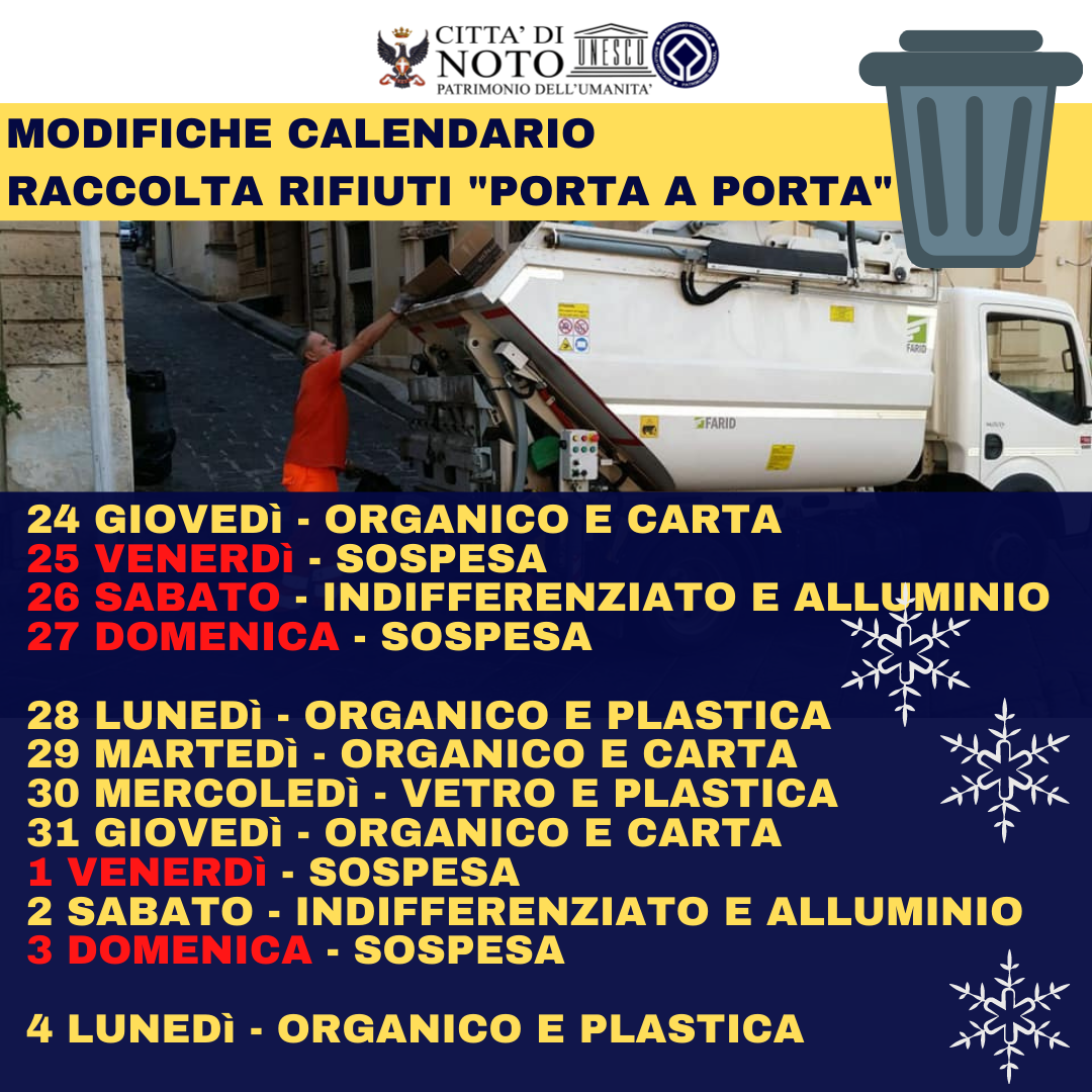 22 dicembre 2020 IMPORTANTE: Modifiche al calendario di raccolta rifiuti nei giorni di Natale e Capodanno Leggi di più